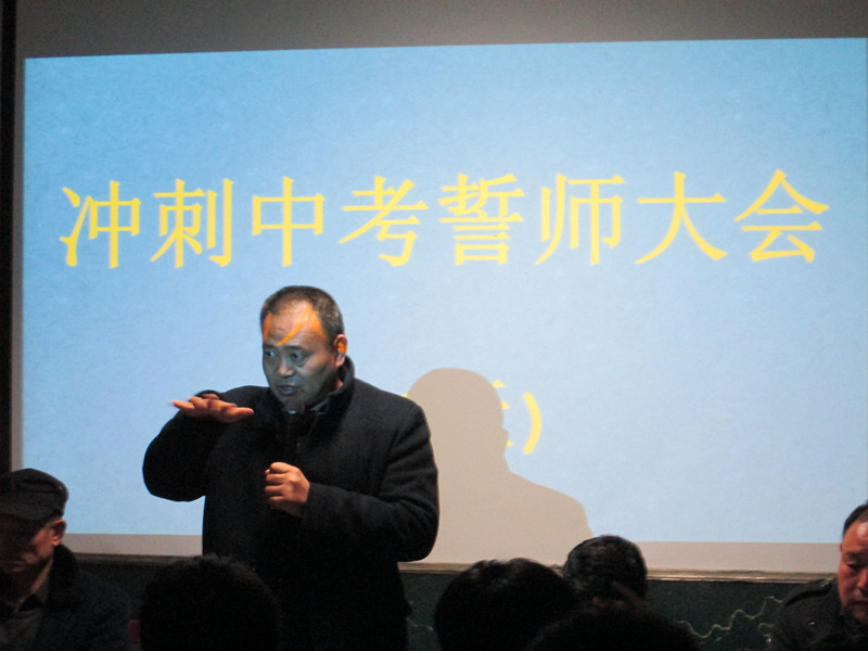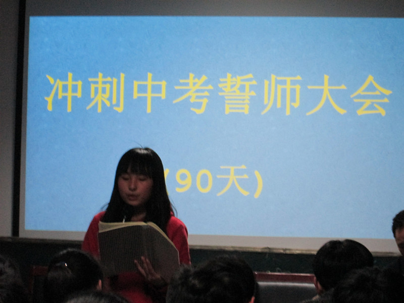 2016年级3月17日,大唐学府的全体师生在会议室举行“冲刺中考誓师大会”。会上王勇基校长首先做了动员报告,接着班主任、任课老师依次做了前瞻性的发言,让学生充分认识到中考的重要性及如何应对中考;然后各班学生代表做了表态发言;最后,全体学生在自己的“中考目标”上庄重地签上了自己的名字。