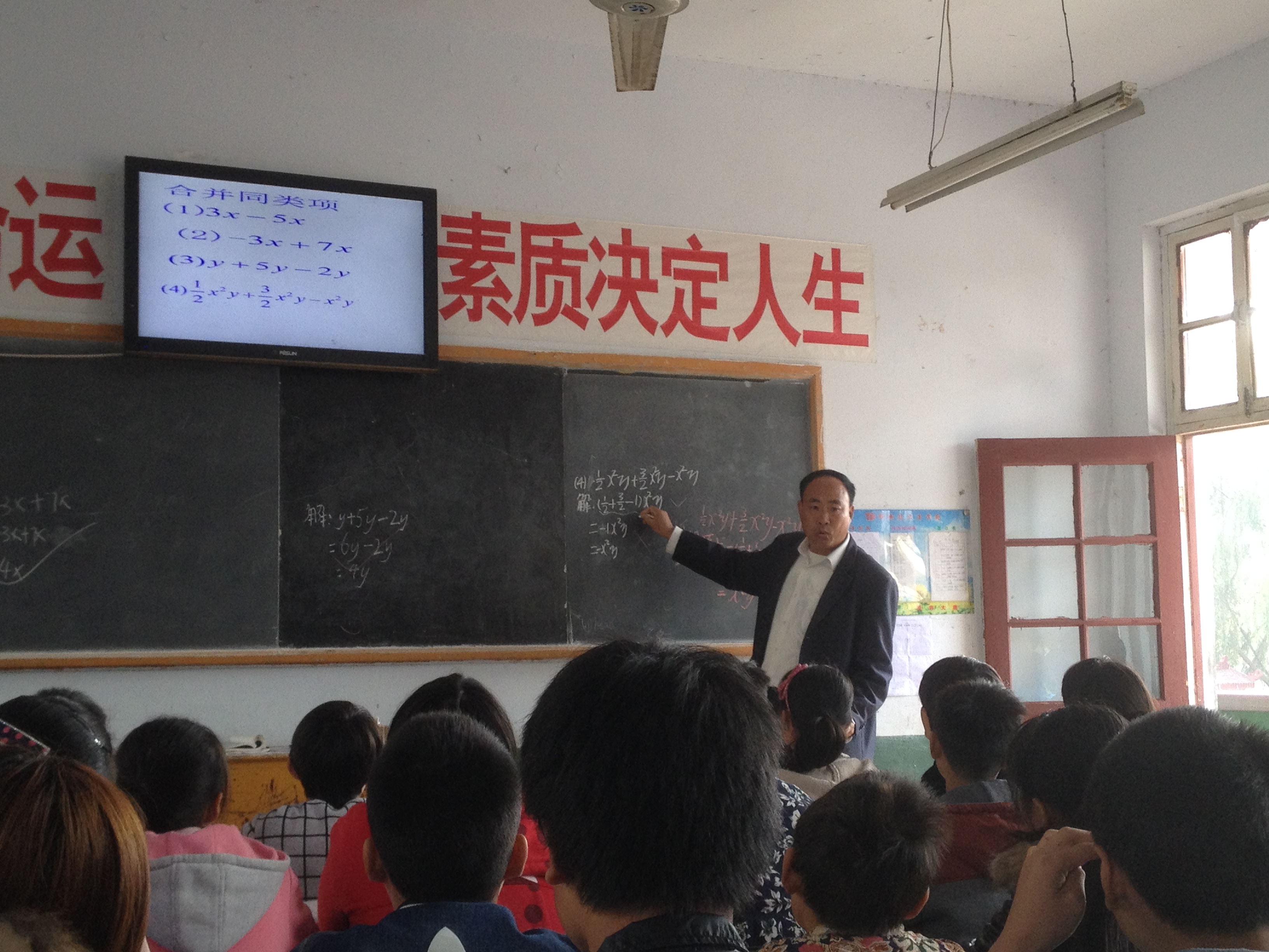图为:数学教师杜同基在给八年级学生现场授课(2015.10.6)