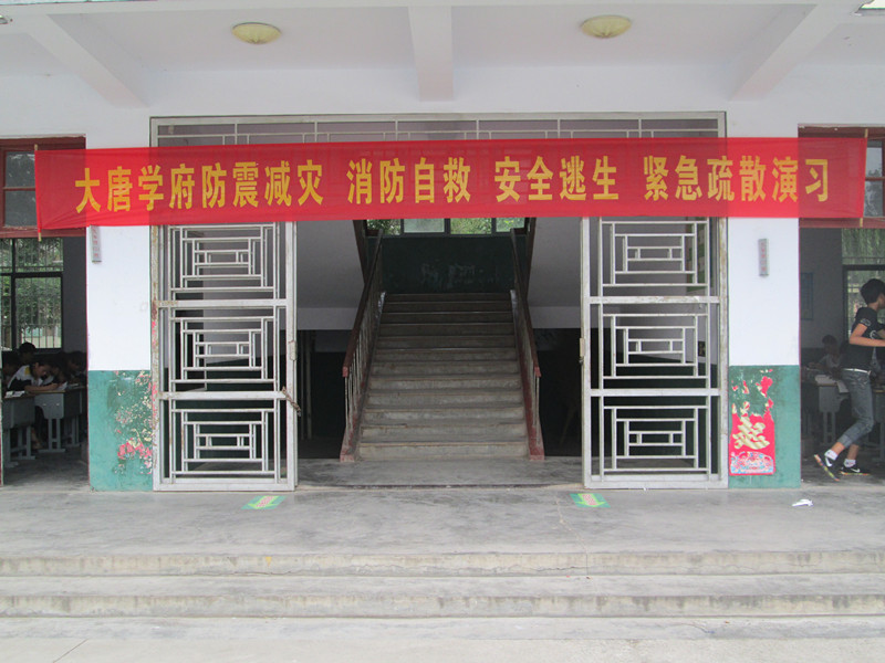 2015年9月19日下午4点50分,大唐学府根据学校本学期计划安排,举行了开学来的第一次“防震减灾、消防自救、安全逃生、紧急疏散演习”。